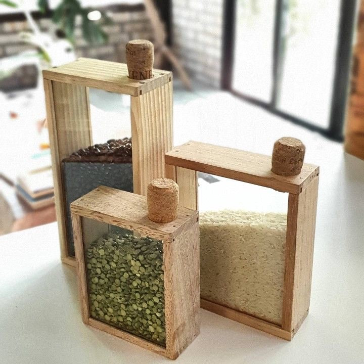 Organize your pantry in style with the Levara 3-Piece Food Storage Jar Set. Perfect for storing rice, beans, lentils, grains, spices, and more — each jar is crafted with a natural wood lid and a clean, minimalist design that blends beautifully into any kitchen.